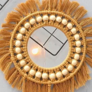 - Suspendez le miroir à l’aide du fil d’accroche en macramé fixé au dos du miroir.