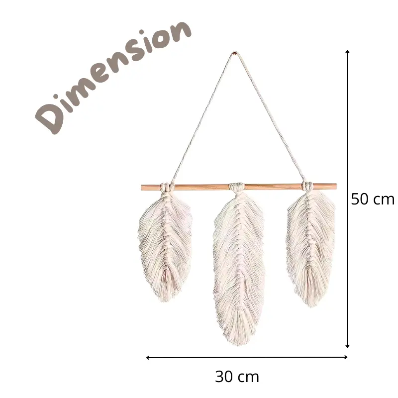 🌟 Envie d’aller plus loin dans la décoration murale ? Découvrez notre gamme d’attrape-rêves en macramé qui se marient à merveille avec la plume géante murale.