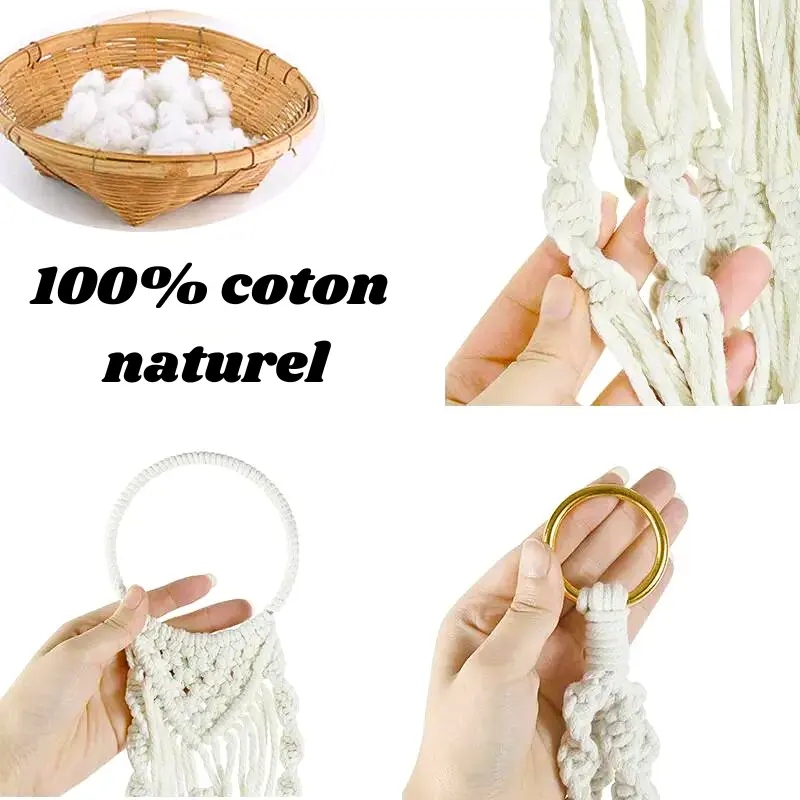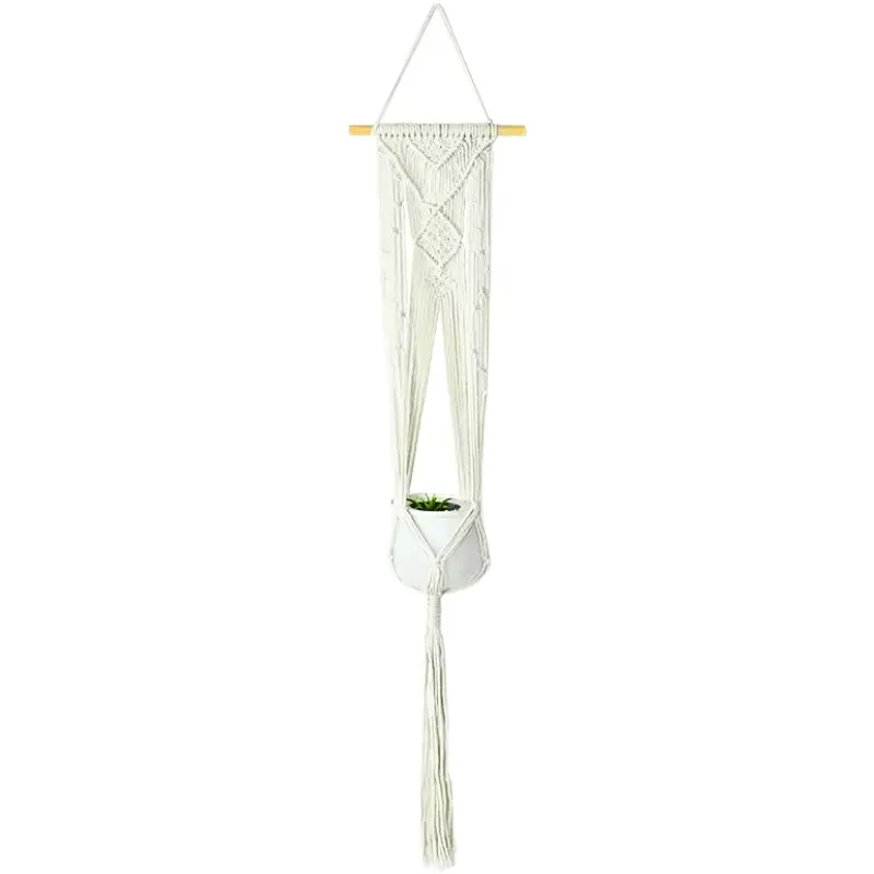 Ajoutez une touche bohème et naturelle à votre intérieur avec ce superbe support pour vos plantes. Cette suspension de pot de fleur en filet de coton, longue de 124 cm, est une véritable œuvre d’art artisanale.