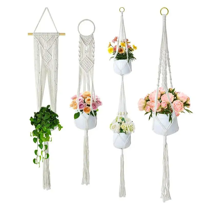 - Disposez votre pot préféré dans la pochette en macramé pour compléter l’effet décoratif.