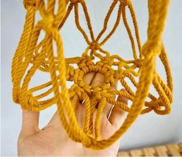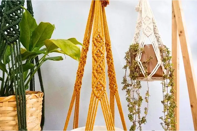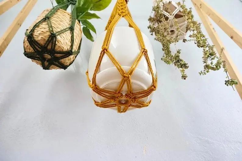 • Placez votre pot de fleur dans la poche en macramé pour créer une décoration végétale unique.
