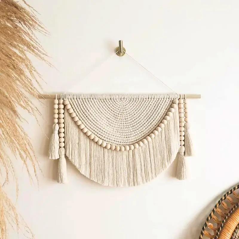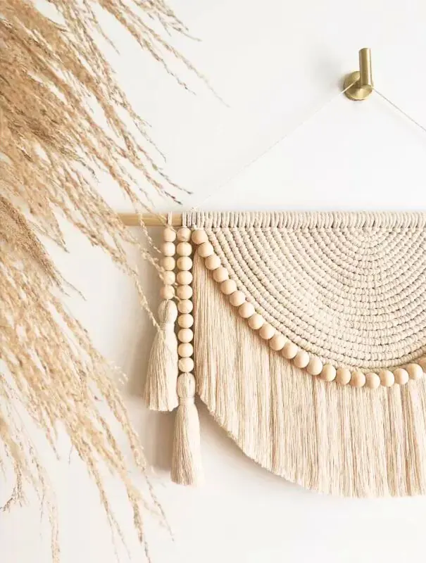 Tenture murale en macramé avec perle et frange : une touche bohème pour votre intérieur