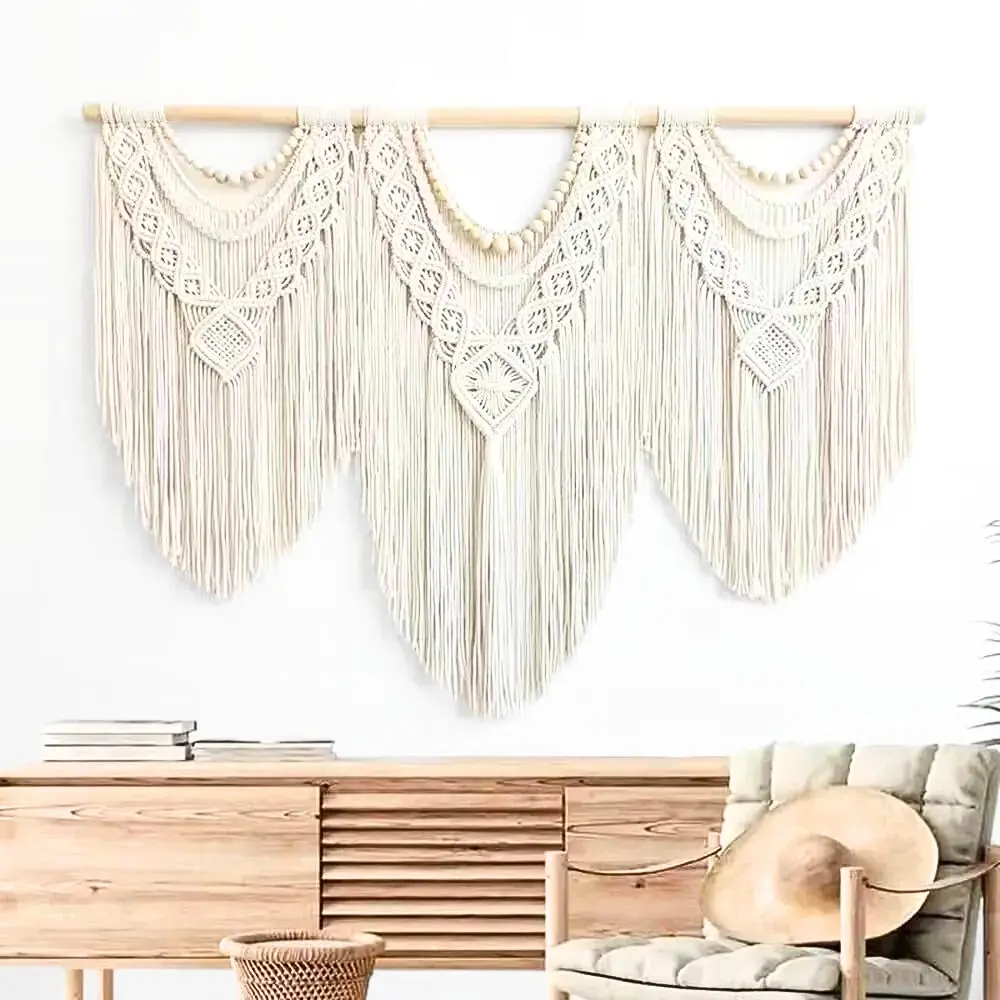 - 1 tête de lit macramé en coton et corde, en trois parties